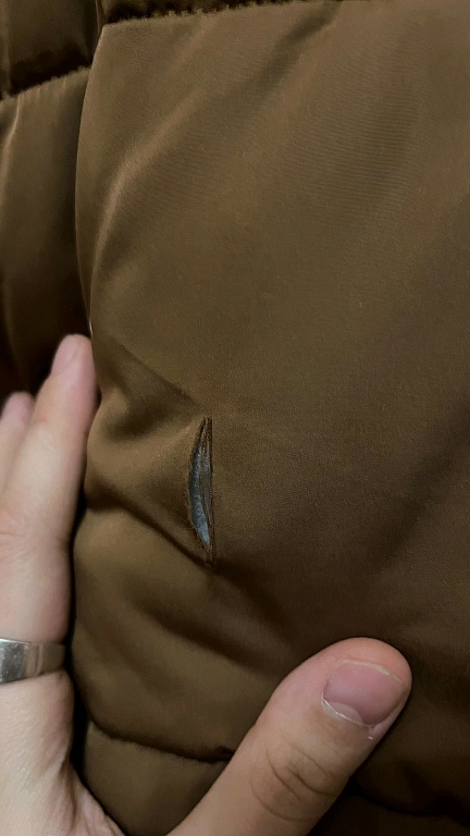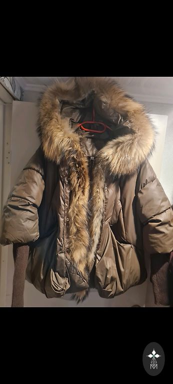 Used but in excellent condition denim jacket with a brown jacket inside with a sewn-on fur trim. The brown jacket can be attached to the denim jacket. Each jacket can also be worn separately.