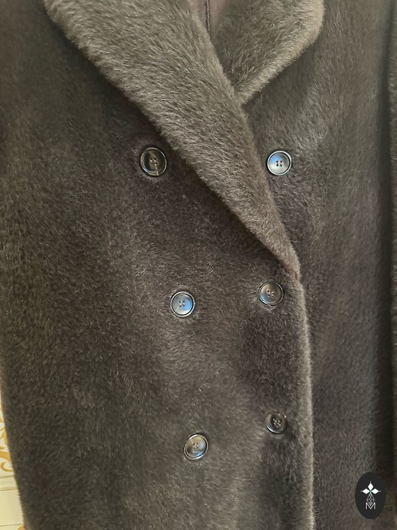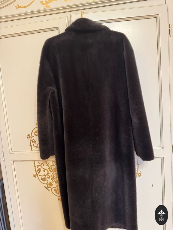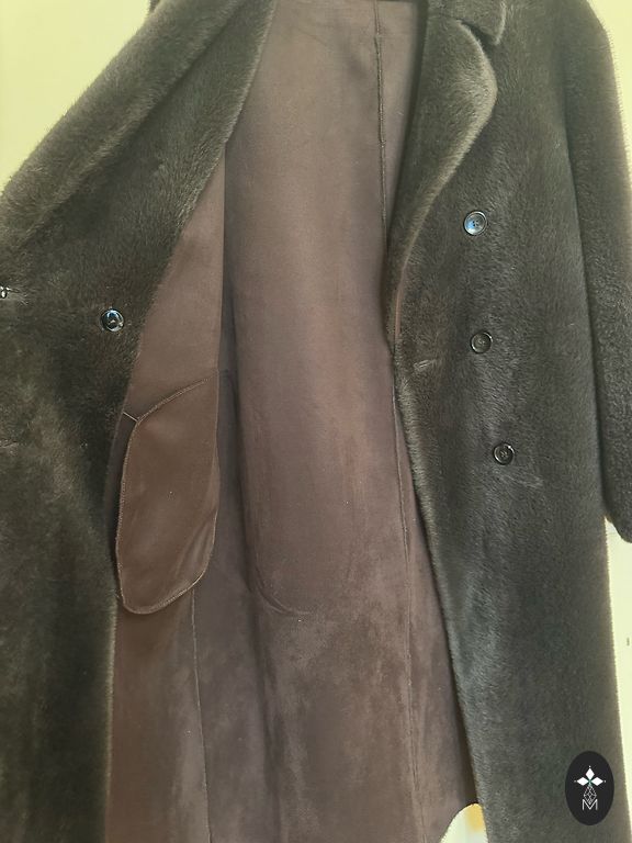 Natūralus kailinis paltas su triušio kailio pamušalu, puriu ir puošniu lapės kailio apykakle, rankogaliais ir kailio apsiuvais visame palto ilgyje (visi nuimami, todėl paltas tinka dėvėti pavasarį ir rudenį).