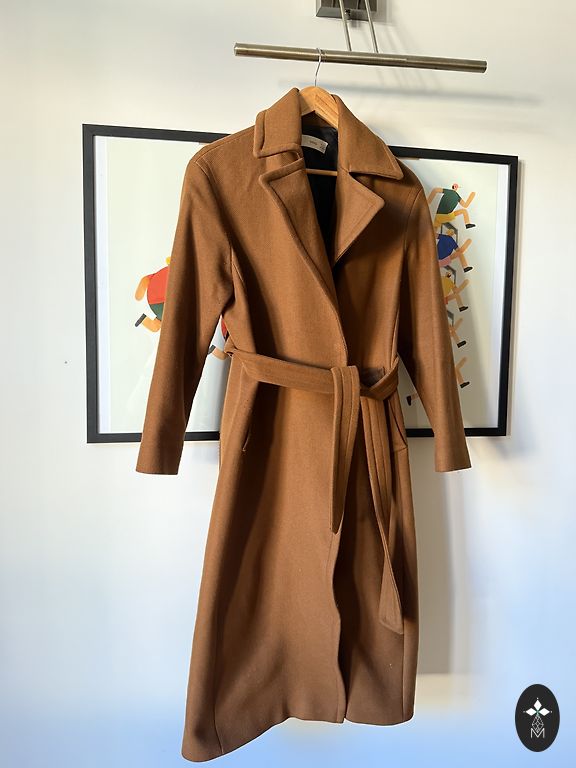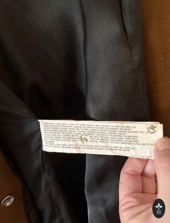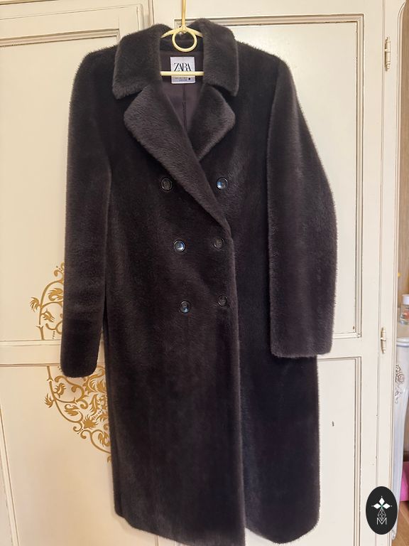 Nešiotas 2 sezonus, be defektų. Iš dviejų diržo skylučių iškrito tik du metaliniai žiedai, tačiau tai netrukdo nešioti. Ilgis 95 Rankovės 60 Krūtinė 43 Klubai 54